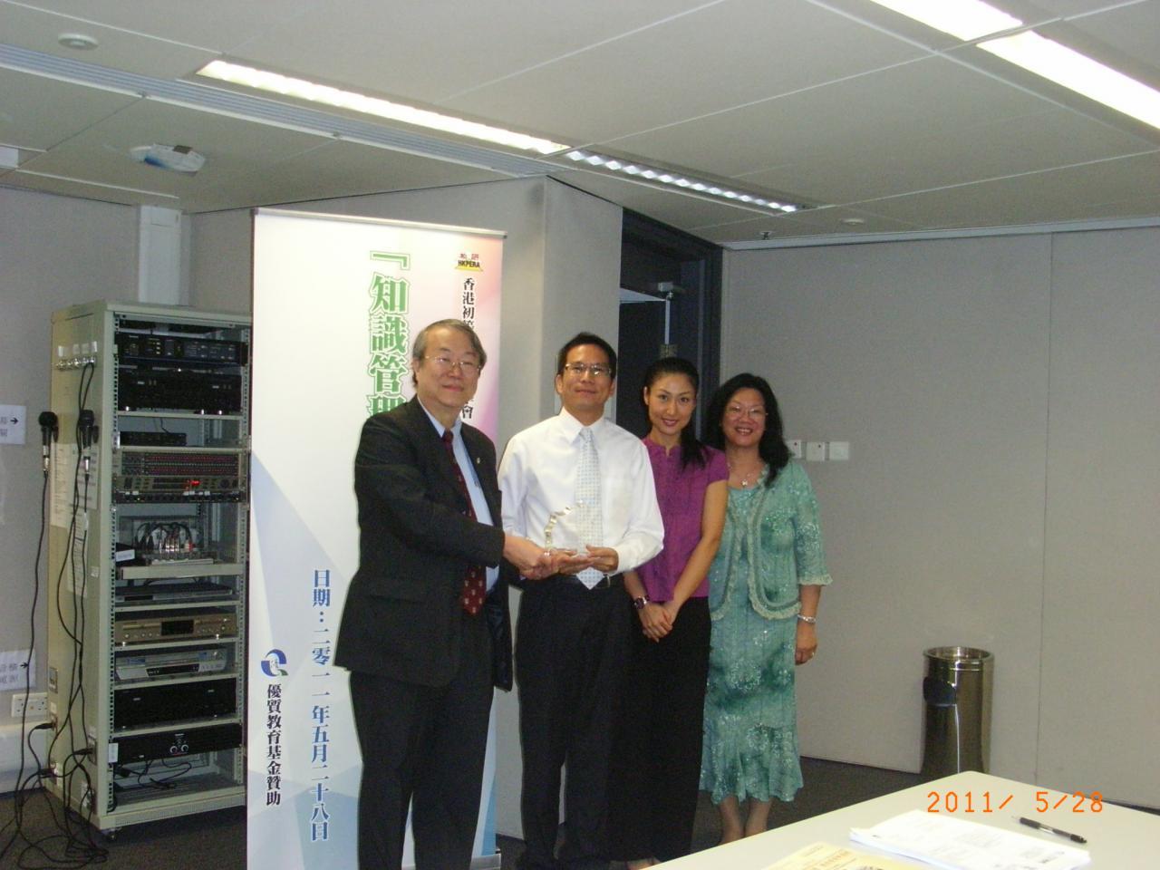 「知識管理與小學發展」是本會一個由優質教育基金贊助的新計劃,計劃於2010年10月起開展,共分兩期進行。第一期計劃為五間學校提供了系統課程、校本培訓及友校參觀服務,並於2011年5月28日舉行了計劃第一期分享會。是次的分享會有幸邀請到香港理工大學知識管理研究中心總監李榮彬教授和呂靜儀助理項目主任作專題主講,該中心自成立以來曾協助不少商業機構利用知識管理的概念得以不斷發展,呂小姐則以此引入教育界可運用的工具進行理念性的講述,令到場的教育界同工大開眼界。分享會上還有三間參與學校進行了分享,在參與了本會「知識管理與小學發展」計劃的一系列活動後,學校都有不同程度的得著,有的學校還著手開始將知識管理的理念在校內應用。