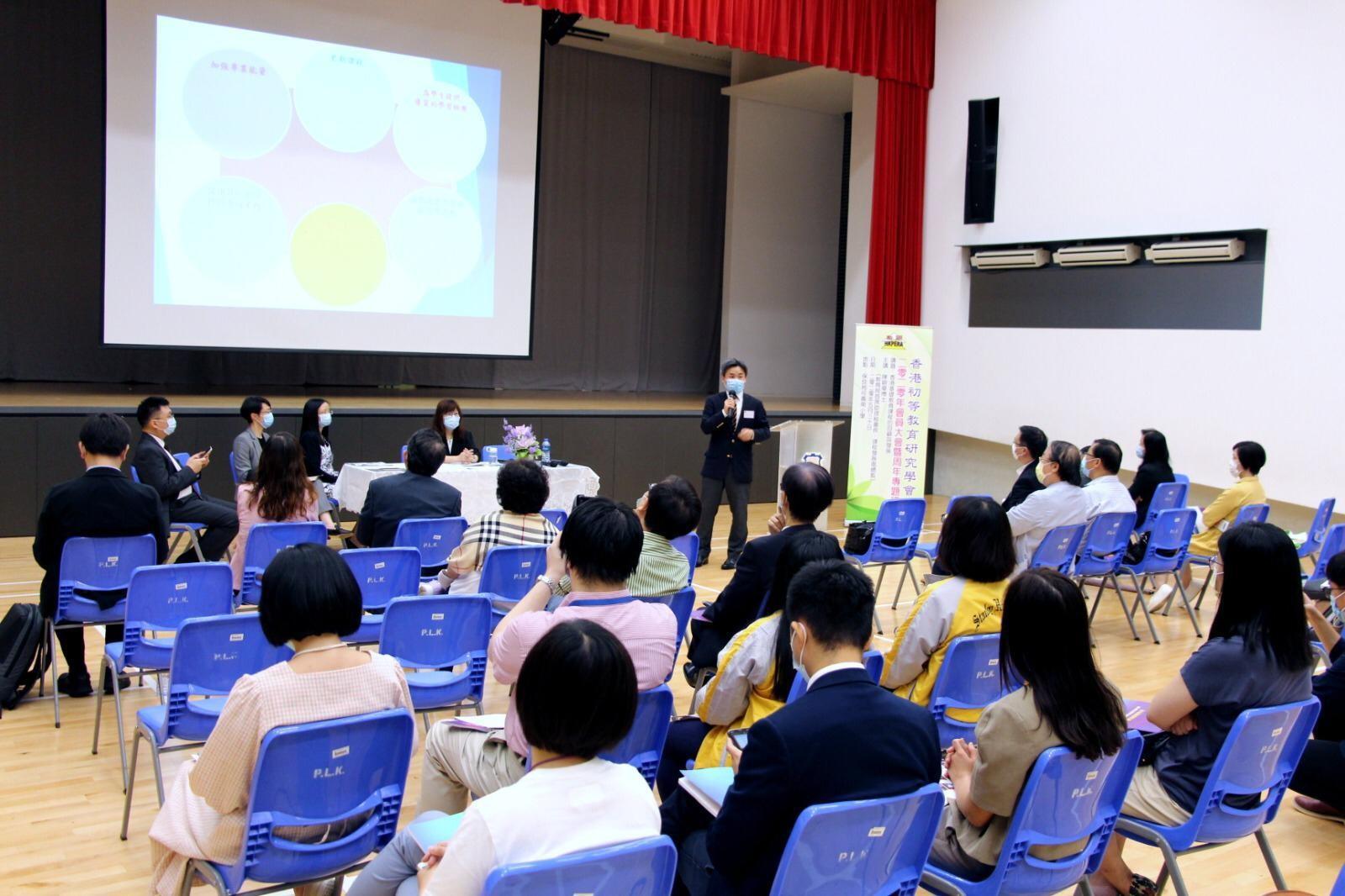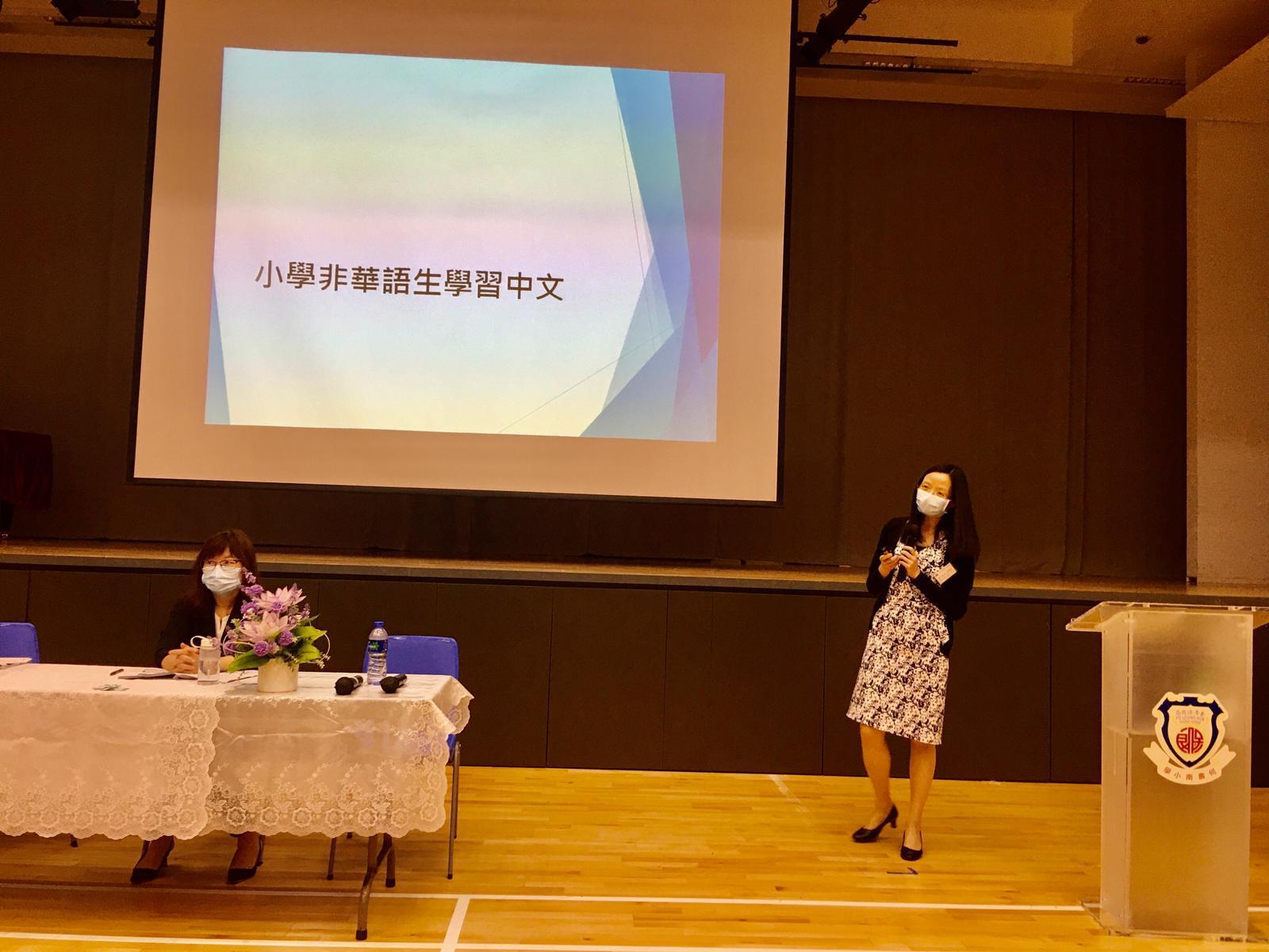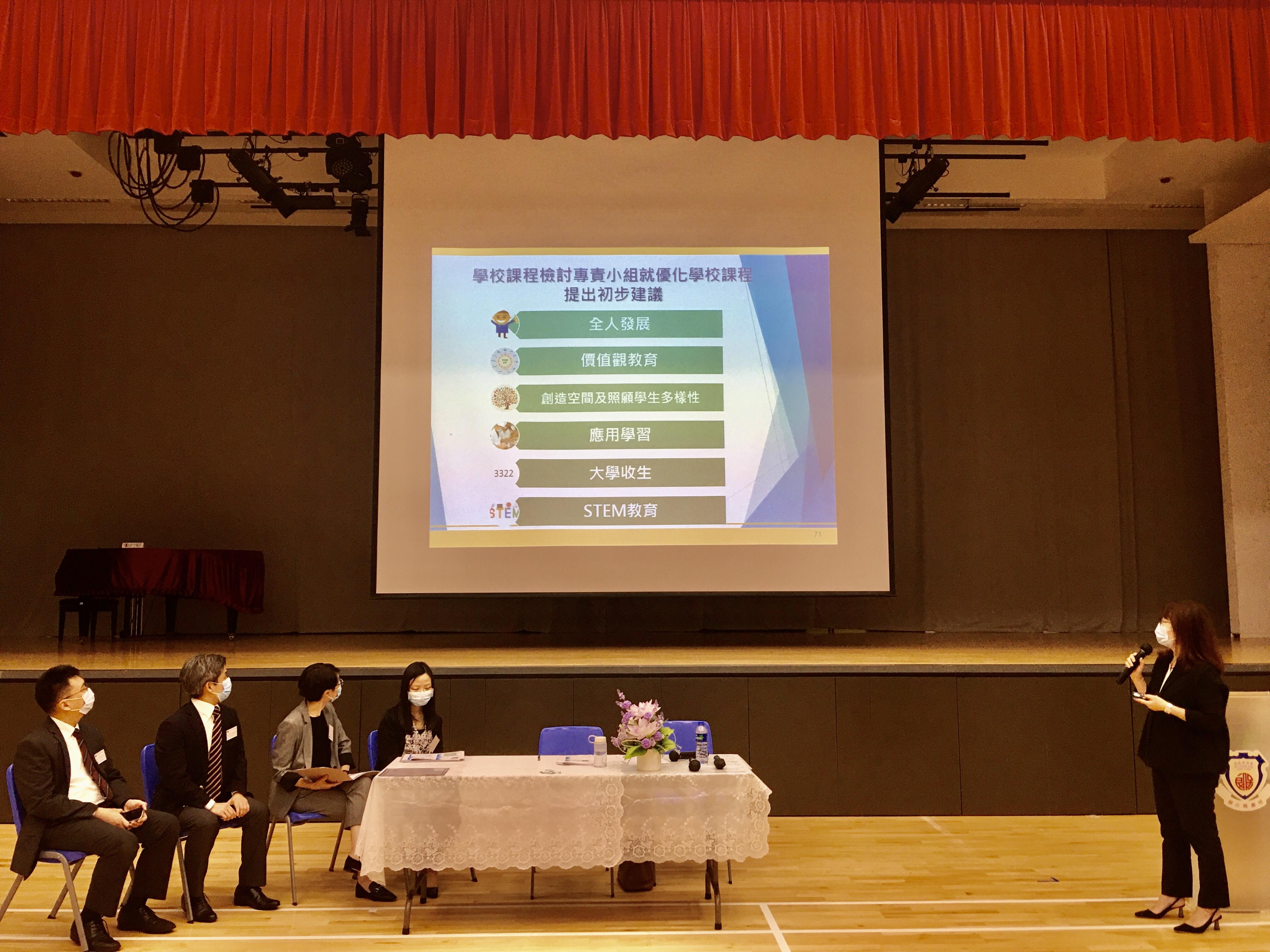 為了讓與會者從多角度了解課程發展,陳碧華總監讓其同工,包括:許承恩博士總課程發展主任(全方位學習)、梁婉慧女士總課程發展主任(幼稚園及小學)、王慶宜女士高級課程發展主任(小學)和林威廉博士高級課程主任(常識科)參與分享,講述香港的全方位學習、價值觀教育、小學非華語生中文課程支援和stem教育的新近發展。在疫情的情況下,30位參與者除要帶上口罩外,每座位距離亦有適切安排。