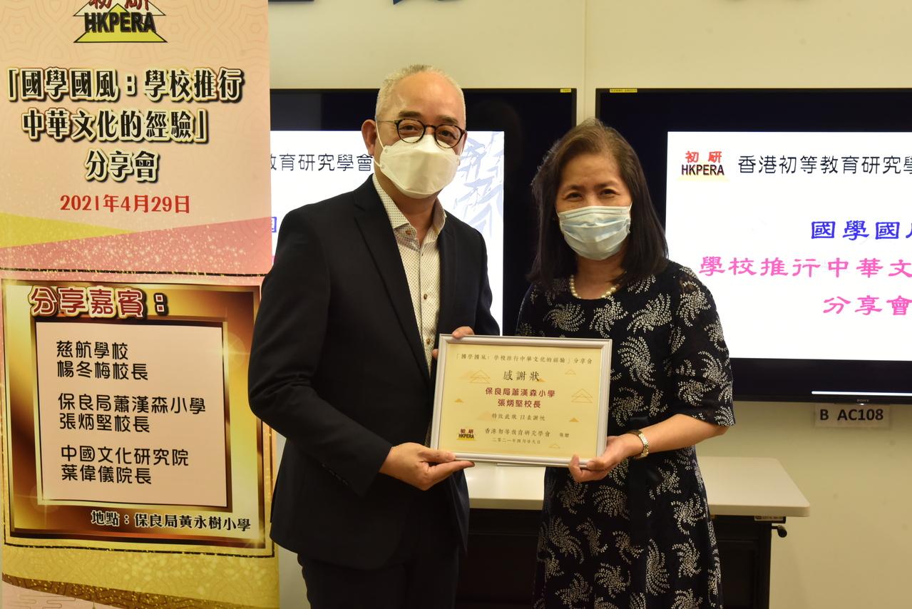 身為中國人,香港學生也應了解中國文化的特色及國學國風對日常生活與人文素養的影響。為促進小學同工交流在校推行中華文化的經驗及了解中國文化専家的觀點,本會於2021年4月29日下午在保良局黃永樹小學舉辦「國學國風:學校推行中華文化的經驗」分享會,主講包括:慈航學校(楊冬梅校長及教師代表)、保良局蕭漢森小學(張炳堅校長及教師代表)、中國文化研究院(葉偉儀院長)。這分享會以實體+線上混合模式舉行,由甘艷梅主席主持,李少鶴會長任評論,來自19間小學和67位同工分別以線上和實體參與。