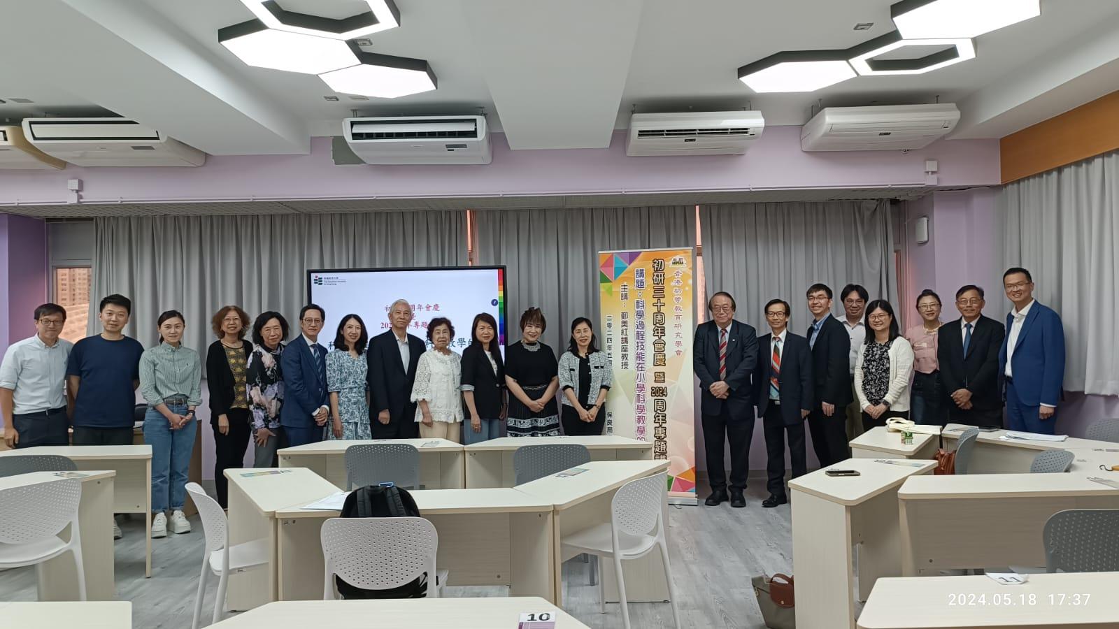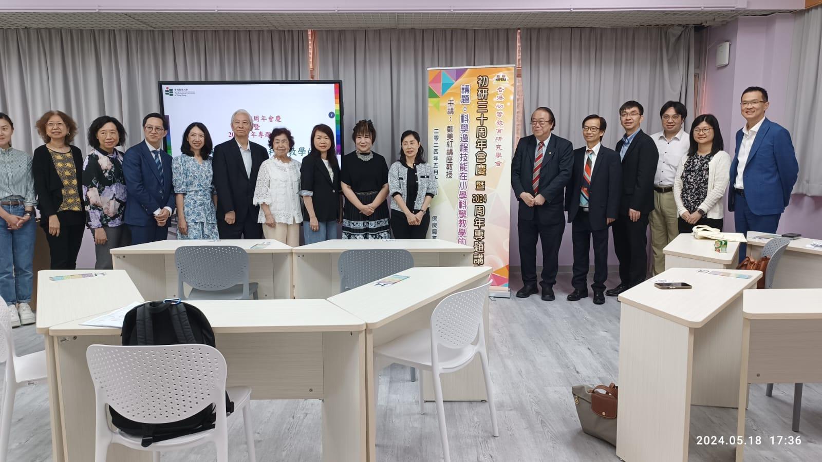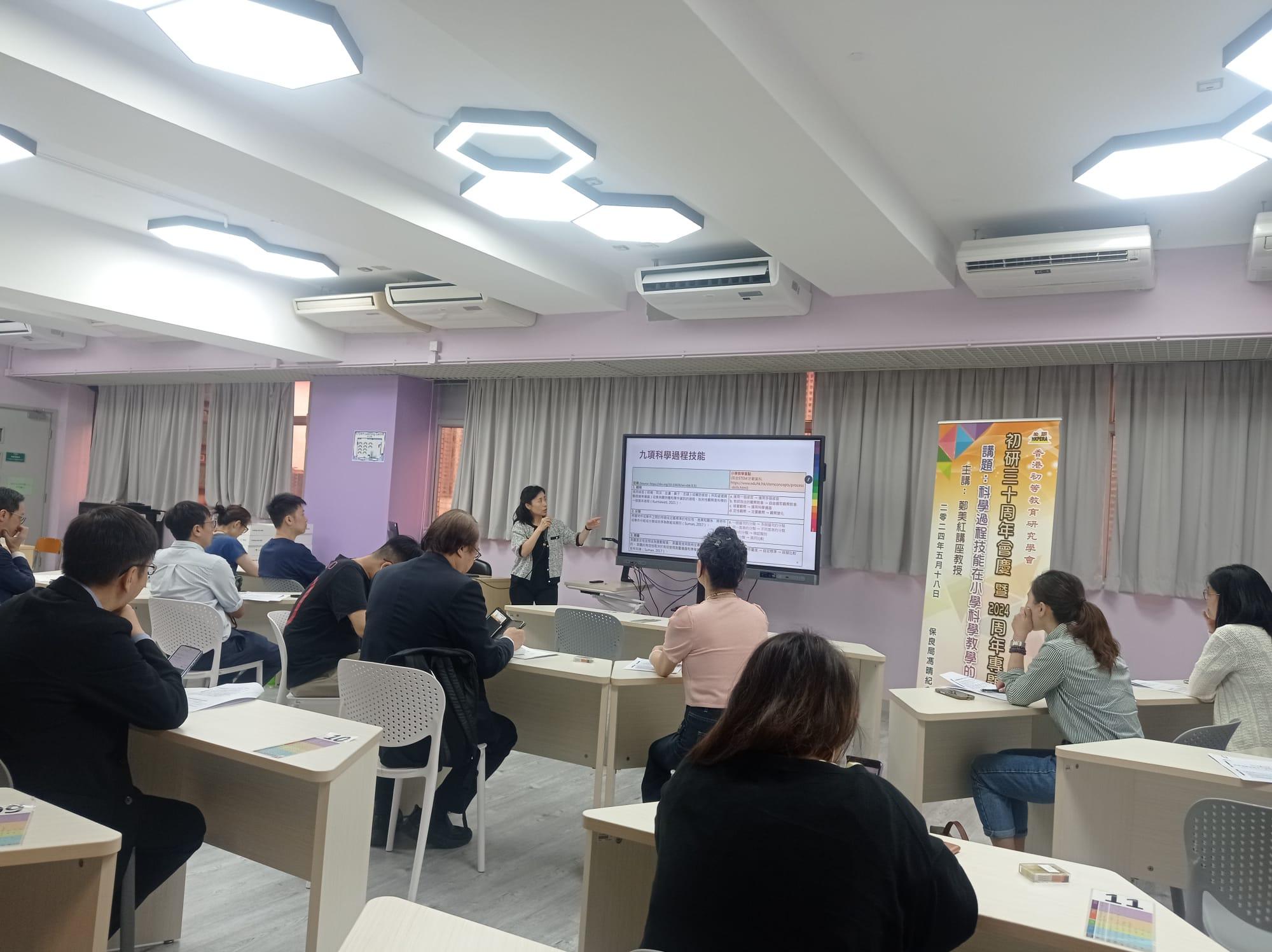 2024年度會員大會及周年專題講座於2024年5月18日(六)在保良局馮晴紀念小學舉行,並於當晚進行周年會員聚餐。2023年《施政報告》公布開設小學科學科,於2025/26學年開始推行;該科課程理念是「探新求知、樂學活用、創造未來」,要求前線教師透過多元化和有趣的動手動腦探究活動,激發學生的好奇心,從而加強學生的科學素養、創意思維和解難能力。初研誠邀香港教育大學副校長(學術)鄭美紅講座教授以「香港小學科學科的發展及校本實作評估」為題作主講,在「初研30周年會慶暨2024周年專題講座」向與執委、會員和友好分享,並提示準備開展科學科時需注意事項,尤其是增強同工開展校本實作評估的理解。是次周年專題講座約30人報名,分6組進行。